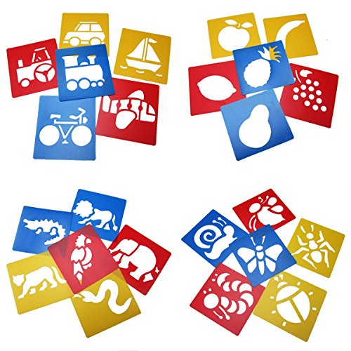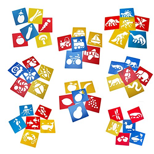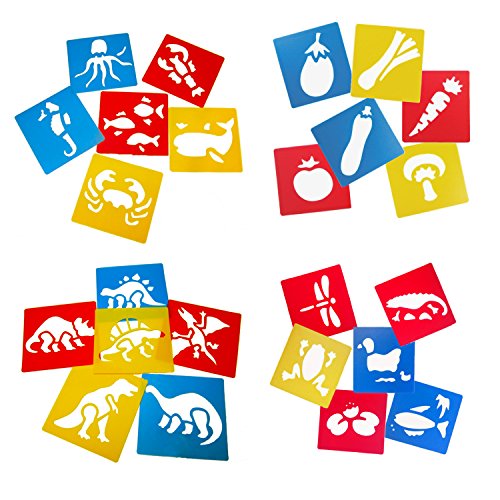 - Pack of 48 pieces stencils, including 6 fruits, 6 insects, 6 vehicles, 6 jungle animals, 6 vegetables, 6 pond animals, 6 dinosaurs and 6 marine animals stencils in assorted random colors.