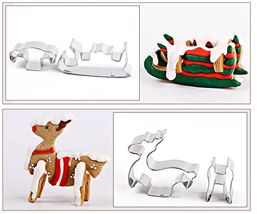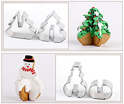 Valuable Package; Includes 8 Pcs 3D Christmas Cookie Cutters to make your unique cute 3D Snowman, Christmas Tree, Reindeer and sleigh cookies.