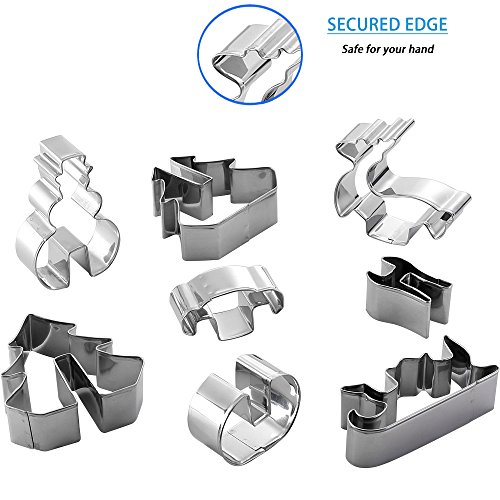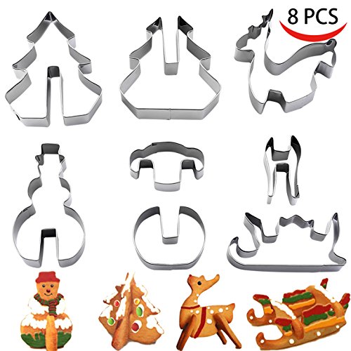3D Christmas Cookie Cutters (Stainless Steel), 8 PCS Biscuit Baking Tools for Large 3D Holiday Cookie, Snowman Cookie, Christmas Tree Cookie, Reindeer Cookie, and Holiday Party