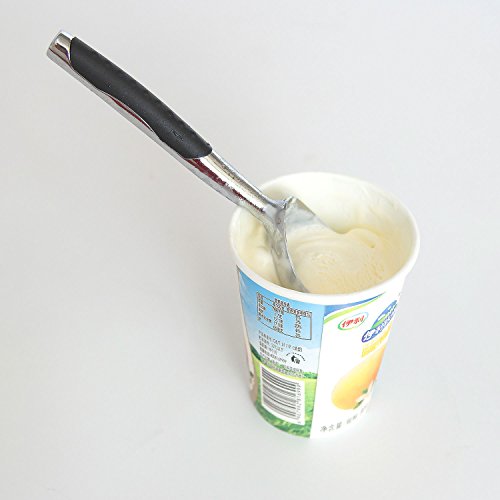 - CONVENIENCE - NO-SLIP, COMFORT HANDLE: Food-Safe & crafted from thermoplastic elastomer rubber, allowing for the perfect balance between a 'firm grip' and 'squishy softness'-so it'll never slip, or strain your hands. Plus the flat edge allows you to dig into the corners of rectangular ice cream containers - so you get EVERY LAST BITE!
