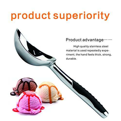Ice Cream Scoops LineWinder Kitchen & Dinning Solid Stainless Steel Ice Cream Scoop, Heavy Duty Kitchen Scooper with Non-slip Rubber Grip, Ideal Scooping for Hardest Ice Cream and Yogurt