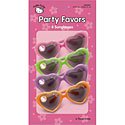 4 pairs of sunglasses are in each package. Each one features a thick, plastic, heart-shaped frame in orange, purple, green, or pink, and each features UV protection on the lenses. The front of each pair measures about 5" across, so they will easily fit moWARNING: CHOKING HAZARD - Small parts not for children under 3 years.Feature