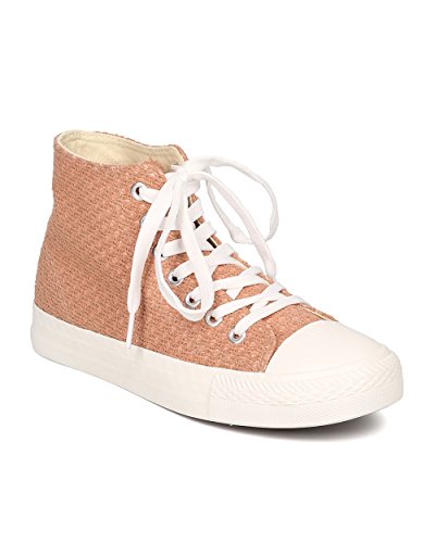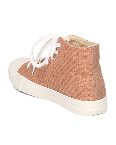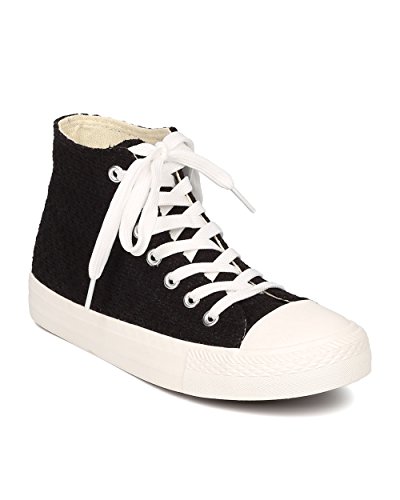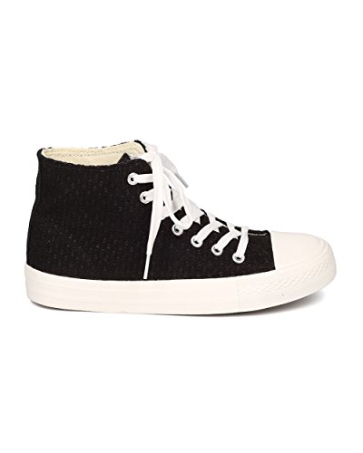 Women Crochet High Top Sneaker - Casual, School, Comfort - Capped Toe Sneaker - GE17 By Qupid