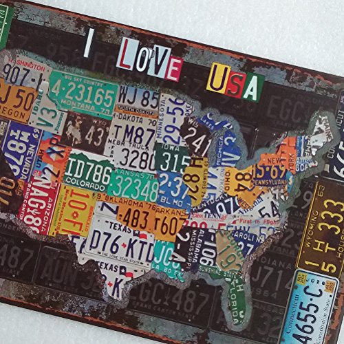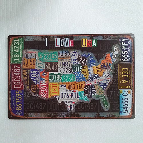 WINOMO Vintage Iron Painting Decorative Signs Tin Metal Car Wall Decor For Wall Home Bar Coffee Shop Decoration (I LOVE USA)