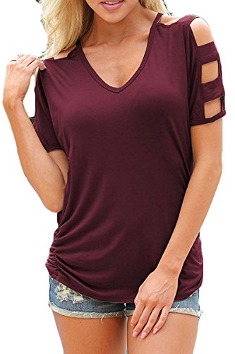-. Feature : Imported / Features:V Neck,Cold Shoulder top with Banded Cutouts on Short Sleeves,Ruching on side seams,perfect for those carefree summer days! / Occasion:Dating,Party,Evening,Casual,Travel,Home,Office,Vacation,Beach,etc / Hand wash or machine wash / Perfectly pair with your favorite leggings, Summer shorts, black slacks, denim jeans, etc