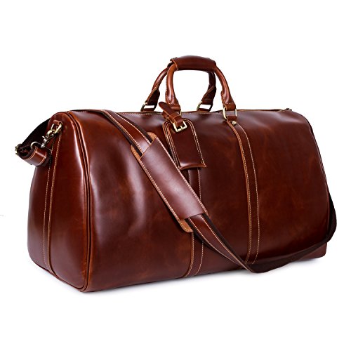 -. Feature : Genuine leather duffel bag for 2-3 nights business trip;free gift PU leather pencil case, get promotion code below / Luggage tag. Fill in the name tag or insert your business card. Perfect gift for frequent travelers / Laptop compartment, smart contrast stitching and canvas lining / Plastic feet for protection; Brass hardware;Removable, adjustable padded shoulder strap / Simple and pure color, high-quality cattlehide, flexible touch and clear and fine texture. Classic and retro design, traditional manual craft, durable nylon thread sewing and excellent and exquisite workmanship.