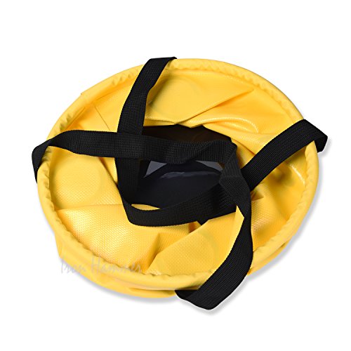 【Superior Quality Material】 Made of waterproof, thick and durable material. After filled with water, it can stand on flat ground and will not fall down. Do not install water, the folding bucket can stand up too