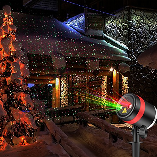 SKONYON LASER CHRISTMAS LIGHTS SHOW RED AND GREEN STAR IP65 WATERPROOF OUTDOOR LASER LIGHT PROJECTOR WITH REMOTE FOR CHRISTMAS, HOLIDAY, PARTY, LANDSCAPE, AND GARDEN DECORATION