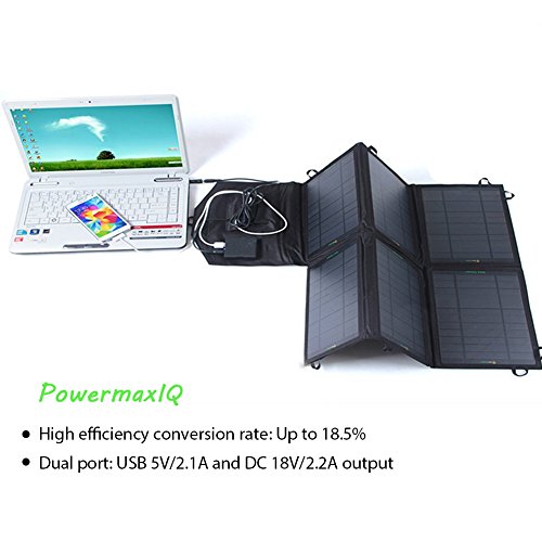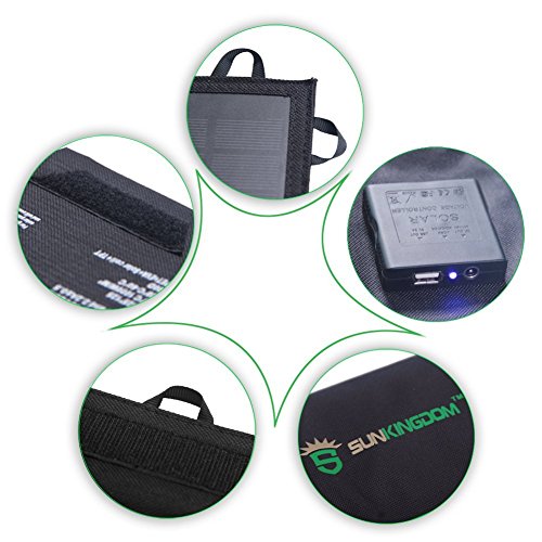 SUNKINGDOM™ Exclusive PowermaxIQ Technology - Automatic recognition and makes charger speed up to 2A asap under the sun 18.5% high efficiency with dual port:USB 5V/2.1A and DC 18V/2.2A output.
