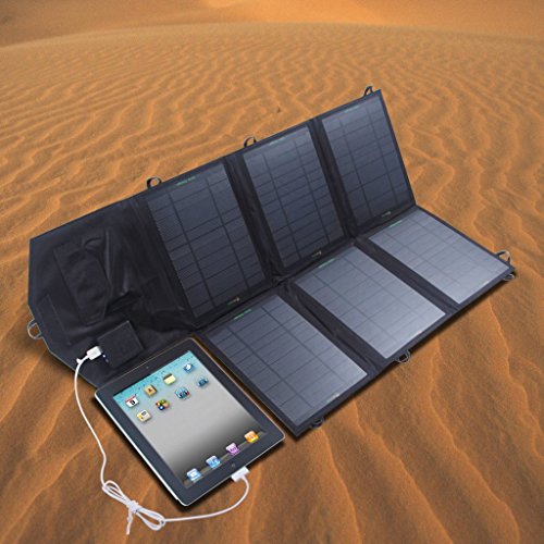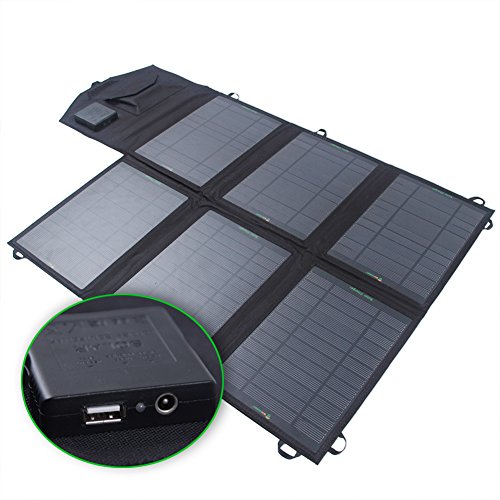 SUNKINGDOM™ 39W 2-Port DC USB Solar Charger with Portable Foldable Solar Panel PowermaxIQ Technology for iPhone, iPad, iPod, Samsung, Camera, and More (Black)