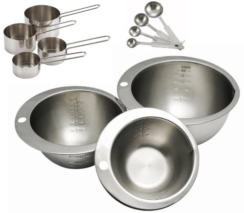 Cybrtrayd 11-Piece Chocolatier's Stainless Steel Measuring Bowl, Cup and Spoon Set