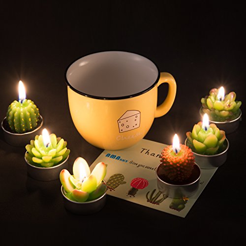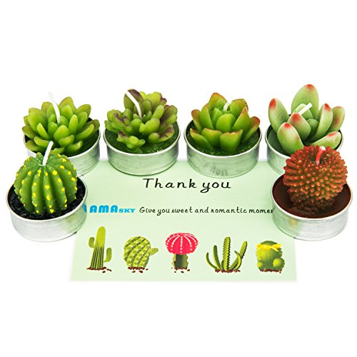 Cactus Tealight Candles, AMASKY Handmade Delicate Succulent Cactus Candles for Birthday Party Wedding Spa Home Decoration, 6 Pcs in Pack. (6)