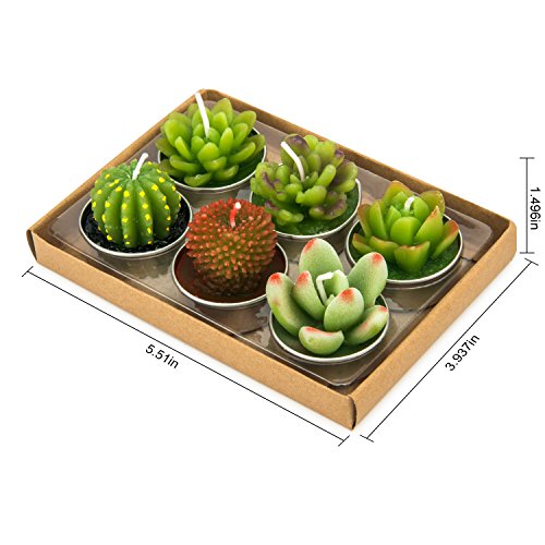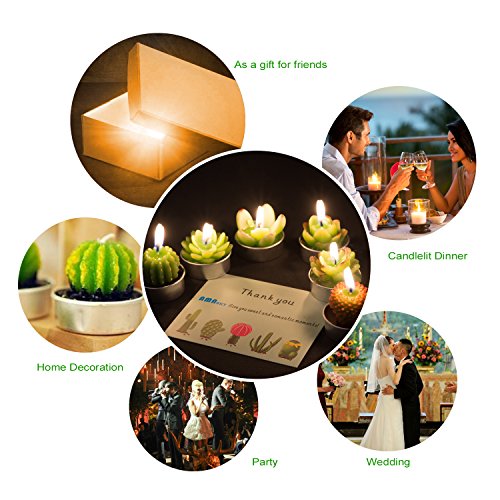 - [Cute & Multi-Purpose] The candle has 6 pcs different vivid and lifelike cactus shape, standard tealight size, perfect for home decoration, birthday party, wedding venue ornament, festival party decoration etc.