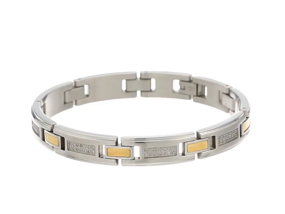 Men's Diamond Stainless Steel with Goldtone Accent Bracelet (1/2cttw, I-J Color, I2-I3 Clarity), 8.5"