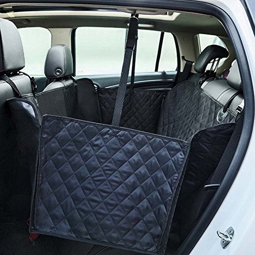 - Heavy duty material - 3 layers waterproof, no harm to your pet - Reinforced headrest straps and clips - Nonslip backing net material and straps to hold the cover in place - 2 seat anchors to tuck in seat to keep cover from sliding - Convertible between hammock or standard bench coverage - One pet cup bag One Pockets - Seat belt openings with velcro - Side flaps for extra protection, easy for dog to get in or out of car - Adjustable straps with clips for easy installation -Upgrade zipper with double sliders for the two side door panels, easier to zip it closed for a box or unzip them both at reaching into the seat and from the exterior side by easily adjust the direction of pull head