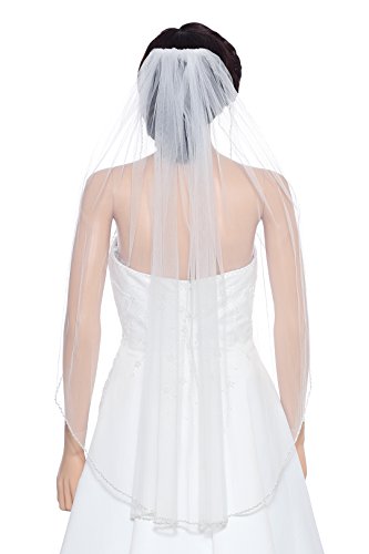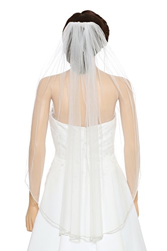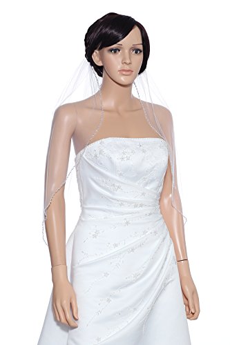 (SAMKY)/Accessories/Scarves/DIRECT FROM USA/1T 1 Tier Pearls Bugle Beaded Wedding Veil Fingertip Length 36"