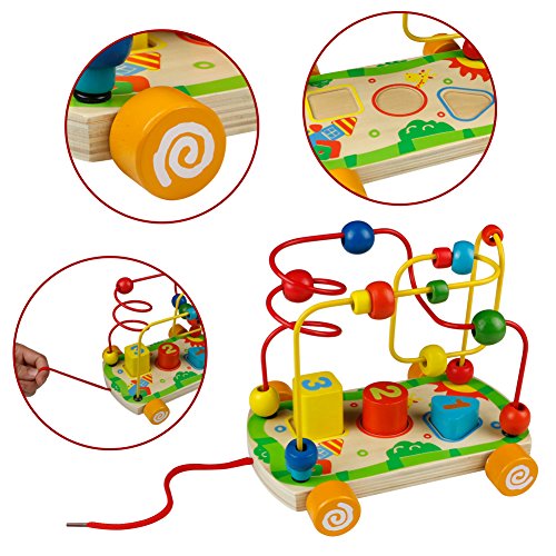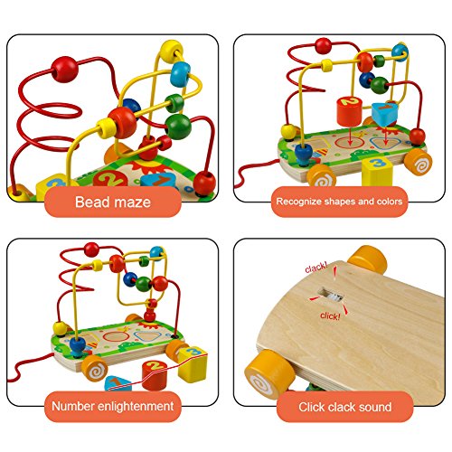 When kids pull the bead maze car, two cute eyes on the front of the toy will move up and down.