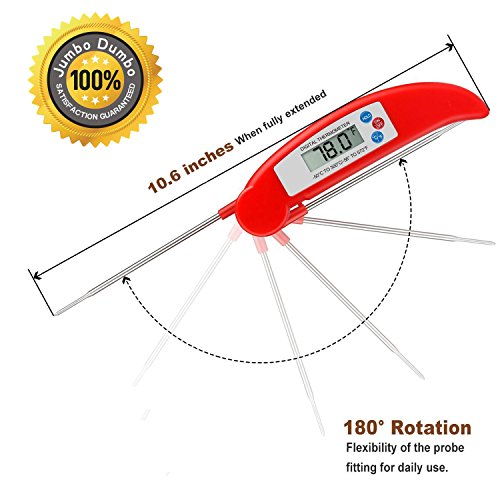 LONG FOLDING PROBE --get the internal temperature of any cooked food quickly and safely. Digital meat thermometer works great with deep frying,making candy baking etc. The tip of the probe is very thin and traces will not be visible on food.