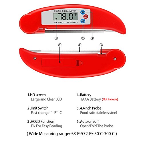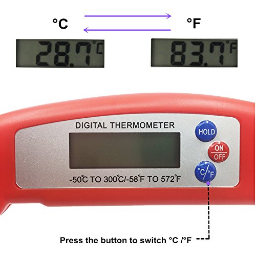 ULTRA FAST --Instant read thermometer measures temperature in 3-6 seconds.Measuring range -58 °F - 572°F (-50°C - 300°C).
