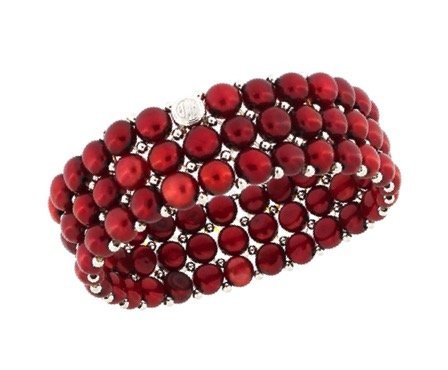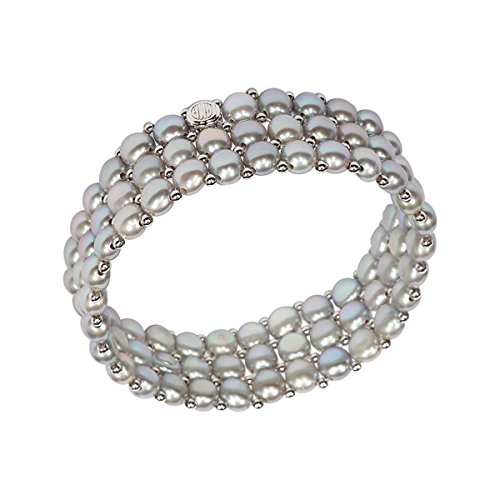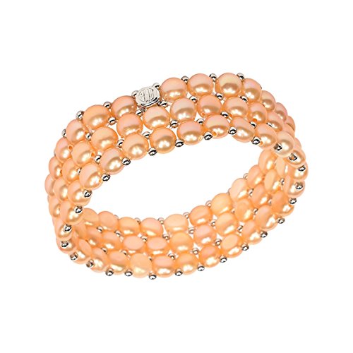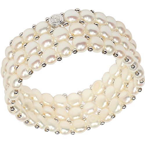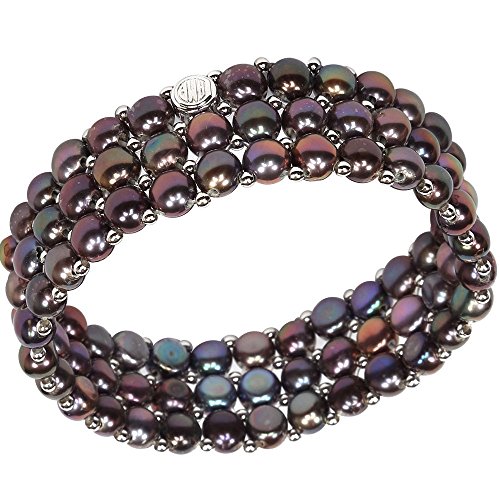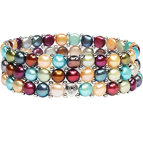 -. Title : Women's Pearl Bracelet - Easy-on Stretch Triple Strand with Stainless Steel spacer beads