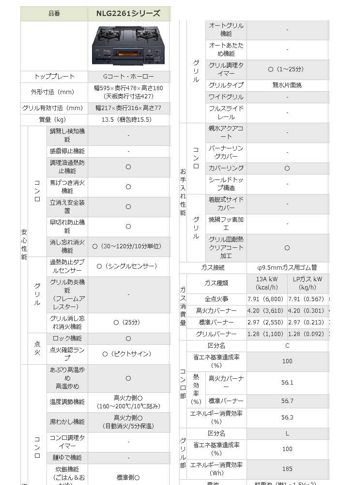 ●グリル有効寸法(mm):幅222×奥行320.5×高さ60