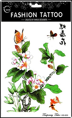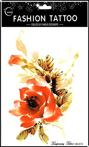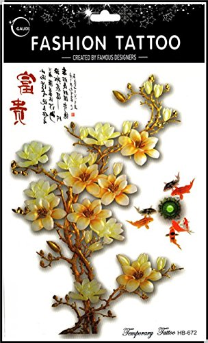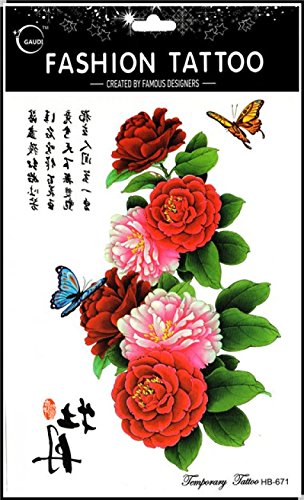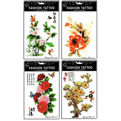 Wonbeauty Fake and real temp tattoo stickers 4pcs different colorful flowers and peony temporary tattoo in a package