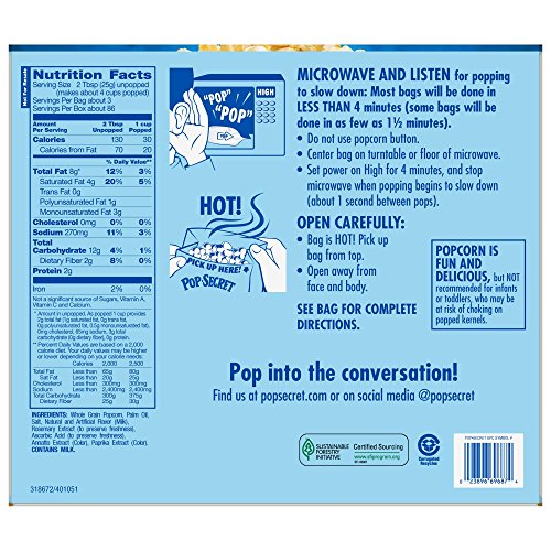 Pop Secret Popcorn, Movie Theater Butter,3 oz, 30 Count