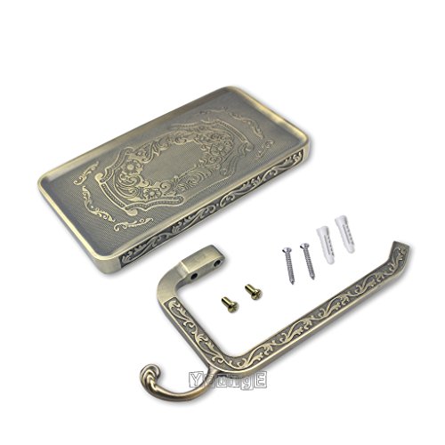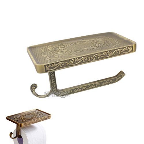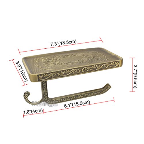 YoungE Antique Carving Toilet Paper Holder,Bathroom Paper Tissue Holder with Mobile Phone Storage Shelf (Antique Brass)