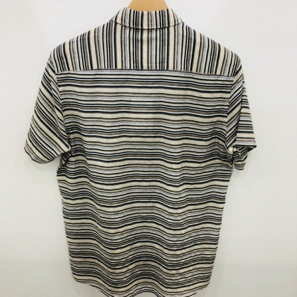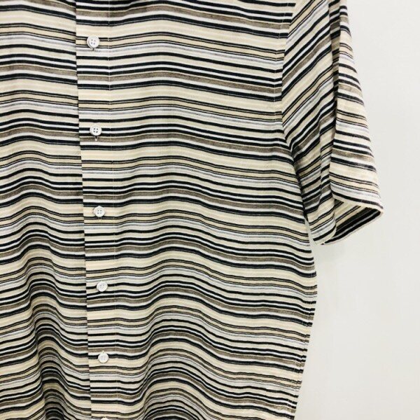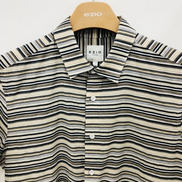 EZIO HOMME 18S/S 스트라이프 셔츠하늘하늘한 원단감으로 여름에 캐주얼바지,반바지등 시원한 느낌으로 스타일을 연출할 수 있는 멋스러운 패턴의 셔츠입니다