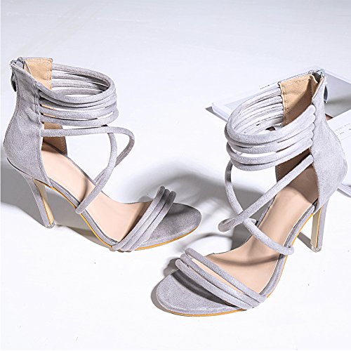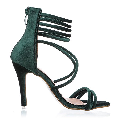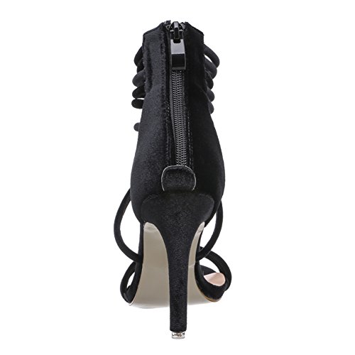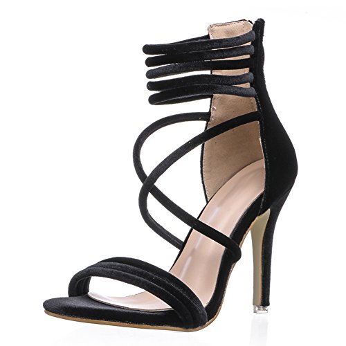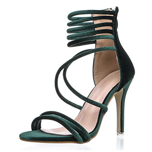 (fereshte)/Women's/Sandals/DIRECT FROM USA/fereshte Women's Sexy Pleuche Back Zipper Cross Ankle Strap Stiletto High Heels Sandals