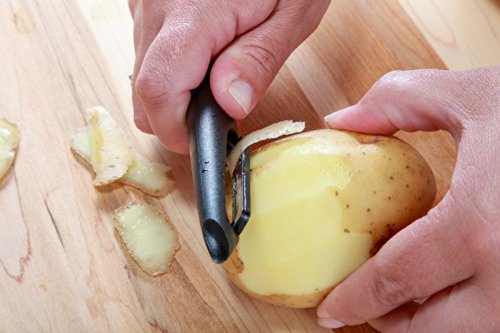 -Angled Tip: Built-in potato eye and blemish remover scoops out defects in one quick movement