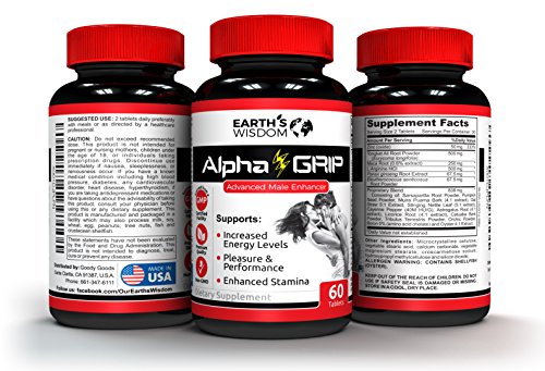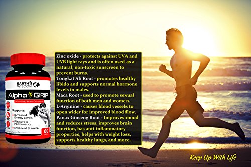★ BOOST YOUR TESTOSTERONE, STAMINA, ENERGY & LIBIDO – Alpha GRIP is a 4-IN-1 Male Enhancement Supplement with clinically proven ingredients that naturally stimulate the production of testosterone, improve stamina, restore energy level, and regenerate your libido. We at Earth's Wisdom have formulated Alpha GRIP to increase your physical performance and promote the vitality of your existence.