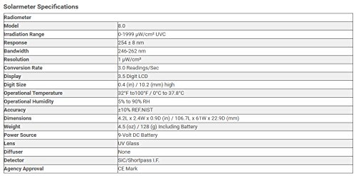 Solarmeter Model 8.0 UVC Meter - Measures 254 +/-8nm with range from 0-1999 µW/cm² UVC