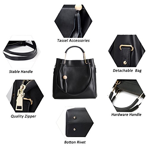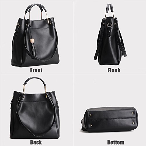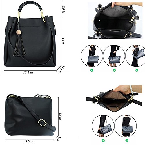 -. Feature : MATERIAL: High Quality PU Leather / CLOSURE: Top Zipper Closure with leather puller / DIMENSIONS: 13.4"W x 9.9"H x 6.6"D, Handle Drop Length: 6.6" / POCKETS: 1 Exterior Back Zipper Pocket,1 Interior Zipper Pocket and 2 Interior Open Pockets / FEATURES: Soft Leather Handle, Zip-pockets in both Interior and Back, Detachable Shoulder Strap and Top-zipper Closure
