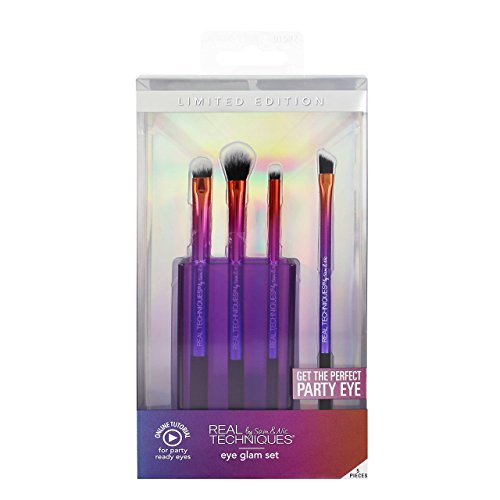 -. Binding : Misc. -. Brand : Real Techniques -. EAN : 0079625915877 -. Feature : base shadow brush: custom cut for shadow application and blending / brow highlighting brush: angled cut easily highlights above and below brow bone / precision smudge brush: pointed, dense bristles for targeted smudging along the lash line / new winged liner brush: thin, angled head for one-sweep application of winged liner / brush cup: store your brushes -. IsAdultProduct : 0 -. Label : Real Techniques -. Manufacturer : Real Techniques -. MPN : LE115 -. PartNumber : LE115 -. ProductGroup : Beauty -. ProductTypeName : BEAUTY -. Publisher : Real Techniques -. Studio : Real Techniques -. Title : Real Techniques Eye Glam Set - 5 Piece Set which Includes a Brush Cup -. UPC : 079625915877