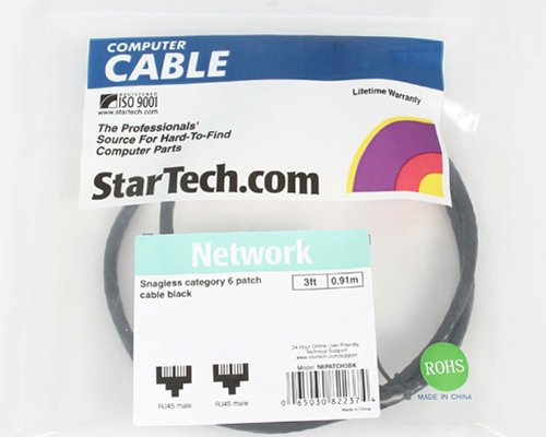 StarTech.com Cat6 Patch Cable with Snagless RJ45 Connectors - 3 ft, Black