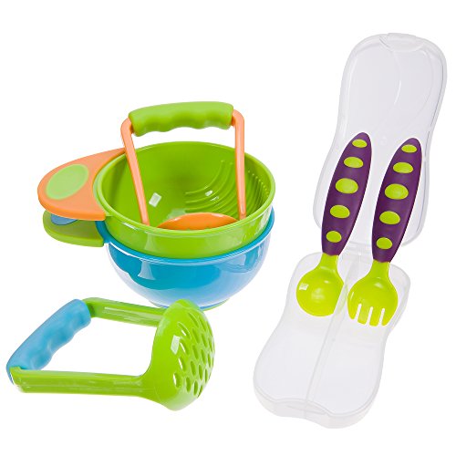 Exhausted from cleaning up the messes my chubby little hands make every time I touch my food? b> then you'll love Babie B's Best Baby Food Masher Bowls Set with Training Spoon Fork Utensil Travel Case. Babie B Fresh Mash and Feed is specially designed for making fresh baby food quickly and easily at home. The Easy Grip masher handle is designed to fit comfortable in parent's hand while the bowl's non-skid base helps keep the bowl in place. Feed your baby fresh, healthy baby food right from the mash bowl. Steam, mash fresh foods into perfect puree and serve your baby directly from the bowl. Then toss in the dishwasher and go play! 2 colorful stackable bowls with mashers easily stored in the cupboard. Dishwasher and Microwave Safe! The set includes 2 bowls, 2 mashers, 1 spoon 1 fork plus a travel case for keeping utensils germ free. BPA Free Experience Peace of Mind BPA BPS Free, 100% PVC Free, Toxin Free, Lead Free, Phthalate Free and FDA APPROVED! If you're babies and toddlers are anything like ours, then you know that everything those little hands touch could eventually end up in their mouth. Plus Babie B is created with the most eco-friendly practices so gentle that even Mother Nature approves! Crafted with Love, from Our Family to Yours, We're reinventing what it means to develop the best products for babies. While you can't directly reach the people in charge at other baby product vendors, you can reach us, because we're family operated and health oriented, so we only offer products we trust enough to use with our own families. So you know you're getting the best, every time. You and Baby Love It!!!!!! Guaranteed! We won't just say try Babie B Baby Mash Bowls with Training Spoon Fork now, and love them or your money-back because we're truly dedicated to your satisfaction. Give Yourself One Less Thing to Worry About! 0