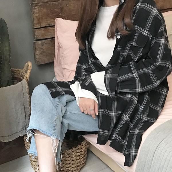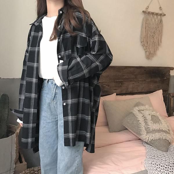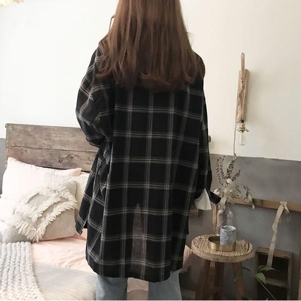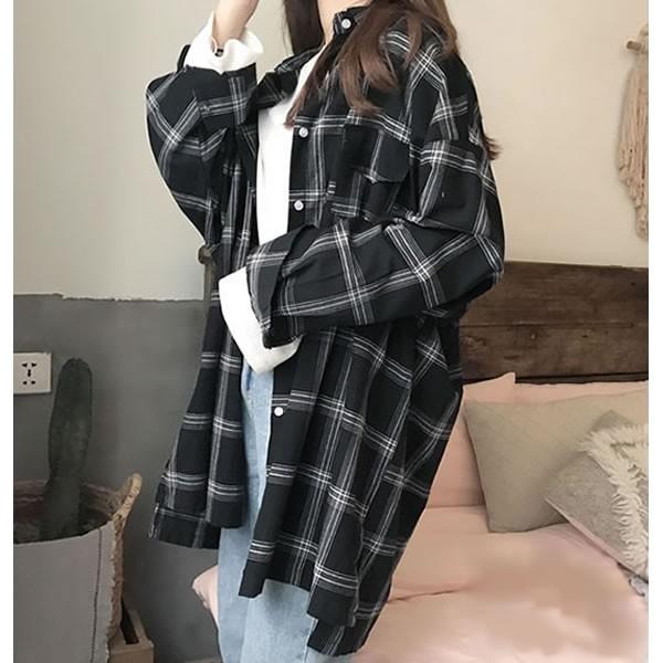 | チェック柄シャツ オーバーサイズ 格子柄 長袖 黒 ブラック 無地[ネコポス可] 【シャツ チェック柄 ブラウス トップス レディース 女性 黒 black 大きいサイズ チェック ブラウス ボタンダウン シャツ 重ね着 羽織り 古着風】 | |
