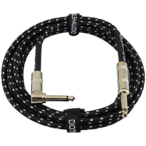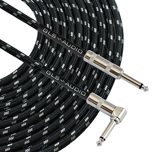 GLS Audio 10 Foot Guitar Instrument Cable - Right Angle 1/4-Inch TS to Straight 1/4-Inch TS 10 FT Black Gray Tweed Cloth Jacket - 10 Feet Pro Cord 10' Phono 6.3mm - SINGLE