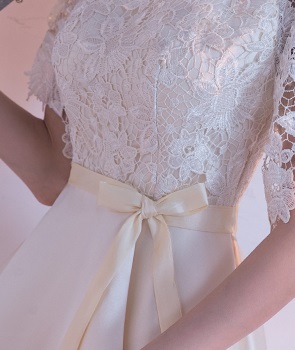 1枚で華やかに決まる、人気のレース&サテンのドレスです。