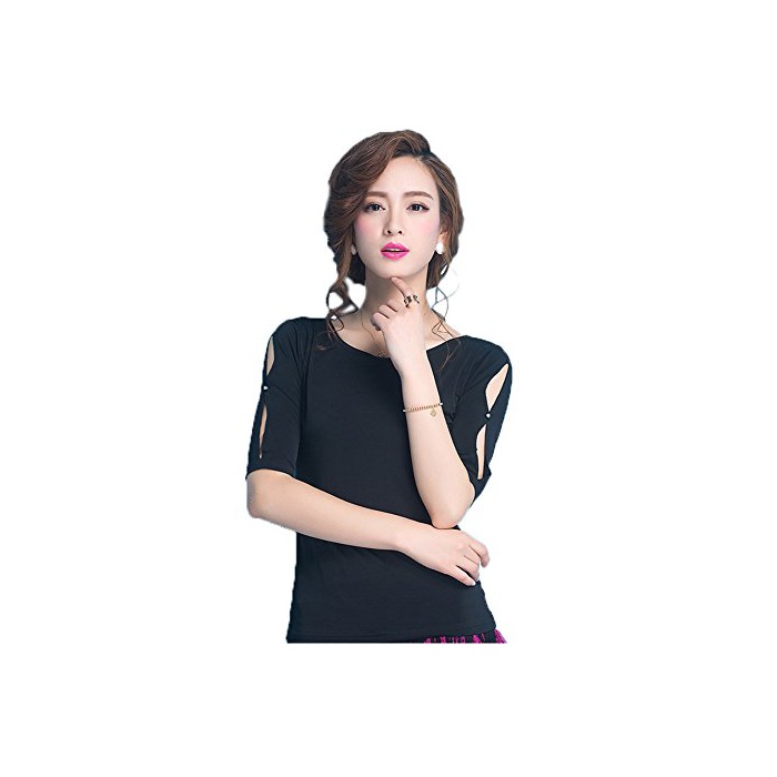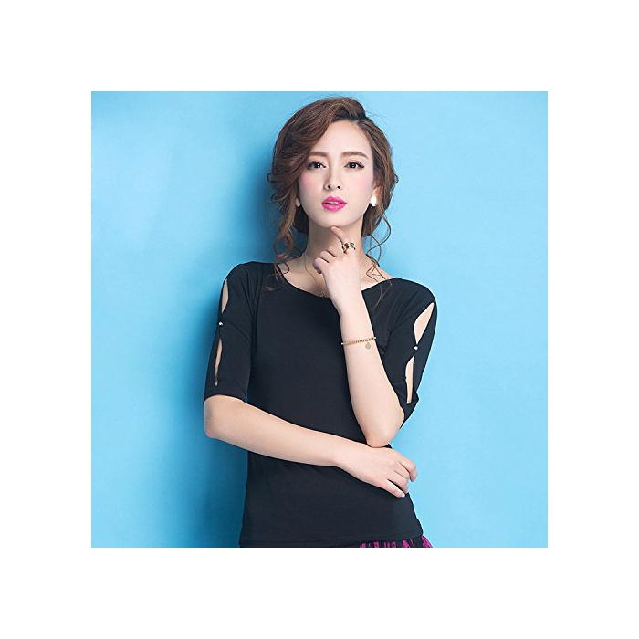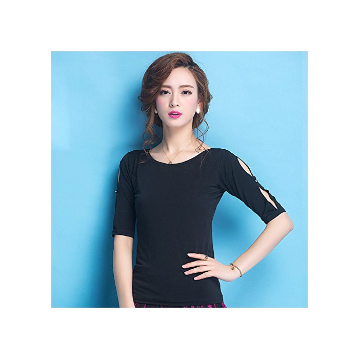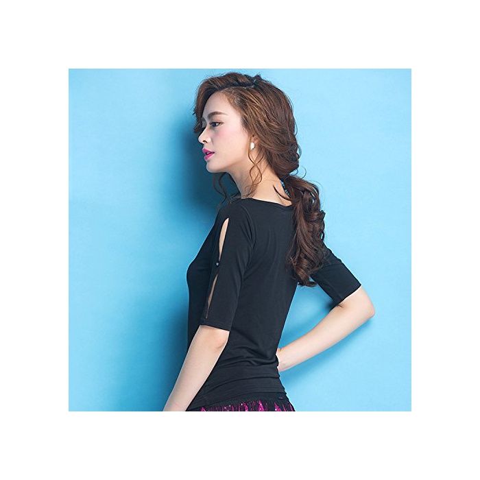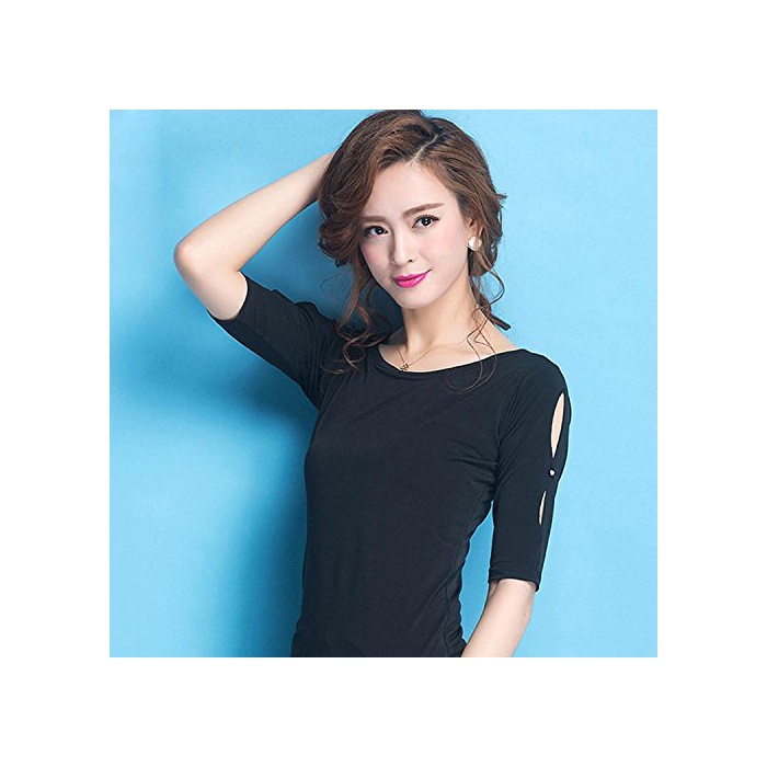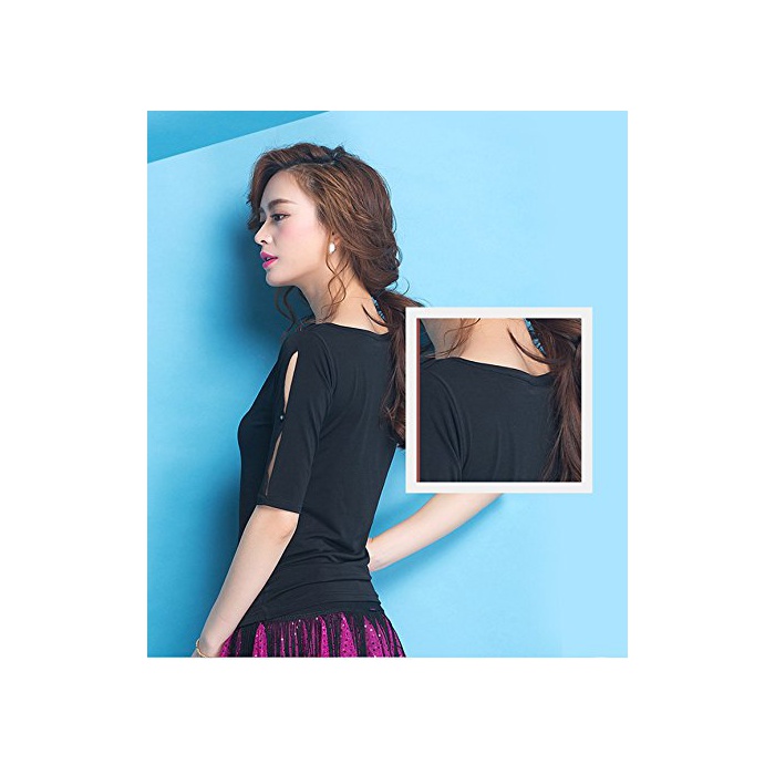 [L-night](L나이트)레이디스 댄스용 셔츠 심플 톱스 흑중 수댄스T셔츠 훌라댄스 사교 댄스 라틴 댄스 플라맹고 의상 댄스 웨어 연습착 모던 경기용 밸리댄스 블라우스
