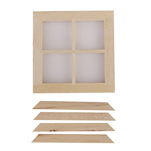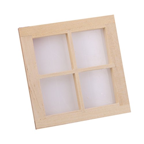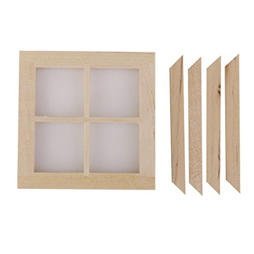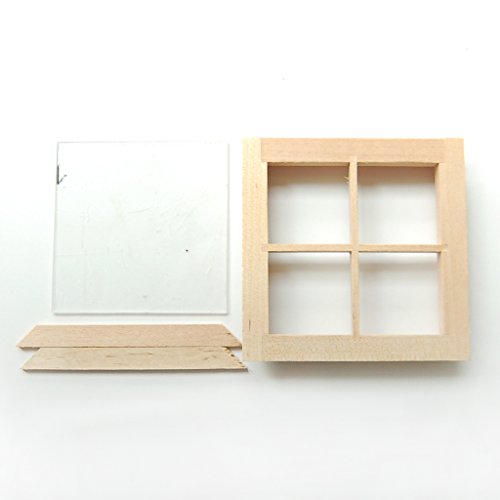 -. Title : Dollhouse Miniature Wooden 4 Pane Window DIY Accessory
