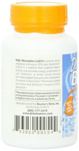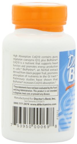 -. Binding : Health and Beauty -. Brand : Doctor's Best -. Color : A897 -. Label : Doctor's Best -. Manufacturer : Doctor's Best -. PackageQuantity : 1 -. ProductGroup : Health and Beauty -. ProductTypeName : HEALTH_PERSONAL_CARE -. Publisher : Doctor's Best -. Studio : Doctor's Best -. Title : Doctor's Best High Absorption CoQ10, 100 mg Vegetable Capsules