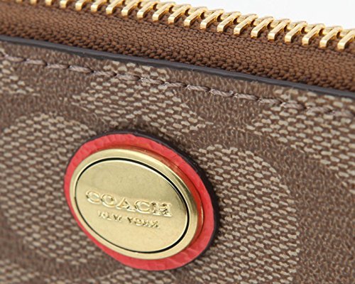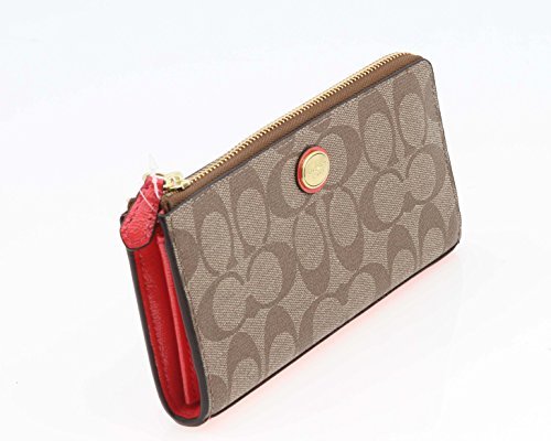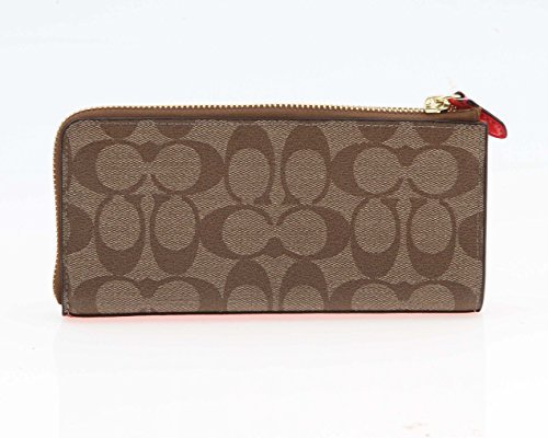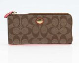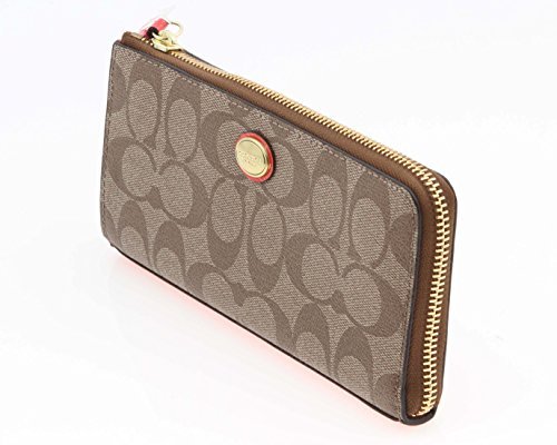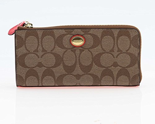 -. Binding : Apparel -. Brand : Coach -. Color : BROWN -. Department : womens -. EAN : 0888067440348 -. Feature : •Dream C print coated canvas with leather trim / •Zip coin pocket, Outside zip pocket Zip closure / •Full-length billfold compartment / •7 3/4" (L) x 3 3/4" (H) -. Model : F49964 BKHP8 -. MPN : F49964 BKHP8 -. PartNumber : F49964 BKHP8 -. ProductGroup : Apparel -. ProductTypeName : BAG -. Title : Peyton Signature Slim Zip Wallet -. UPC : 888067440348 Coach Peyton Signature Slim Zip Accordion Wallet, Rich, stay clean coated canvas with the Coach Signature C's in light brown tones and soft, supple tan leather trim Coach gold metal oval logo on the front Gold hardware Inside has pink fabric and khaki persimon textured coated canvas 8 credit card / ID slots Interior zip pocket for coins 2 side bill slip pockets 2 divided interior sections Measures approx. : 7 3/4" L x 3 3/4 1 " H. Comes with original Coach price tag & wrapped in Coach tissue paper