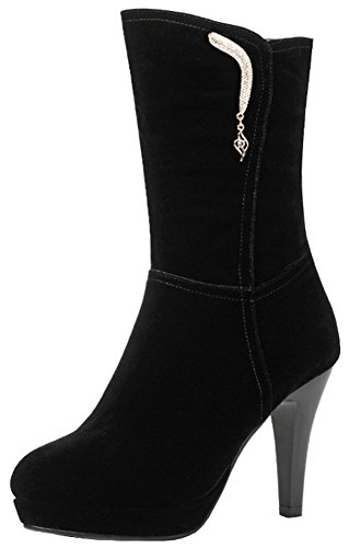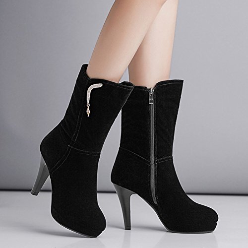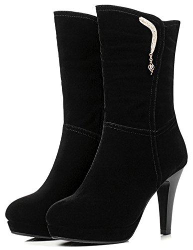 (Mofri)/Women's/Boots/DIRECT FROM USA/Mofri Women's Chic Rhinestone Stiletto High Heel Platform Round Toe Faux Suede Side Zipper Mid ...