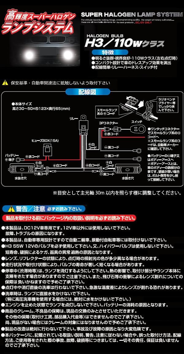 | 仕様 | H3/55Wバルブ 明るさ:110Wクラス(左右点灯時) ランプ部:角型 |