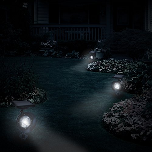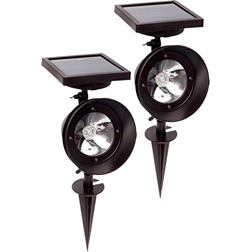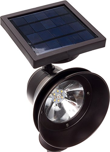 Light up your yard with this Bright Triple Function Solar Spotlight by GreenLighting! Fully solar powered, this easy to install light requires no additional wiring, so you can freely place it wherever you wish. The smooth aluminum construction is weather resistant and blends in with traditional yard decor, and the adjustable top mounted polycrystalline solar panel collects the energy to power the 3.7V 2000mAh lithium battery. Three modes of light - steady white, color changing, or color select - are controlled by easy access switches on the underside of the solar panel, and provide up to 100 lumens of light. Whether you use this spotlight to highlight your home or to add a splash of color, this Triple Function Solar Spotlight will fulfill your landscaping dreams. Measures 5.5" x 5.1" x 14.57"Feature