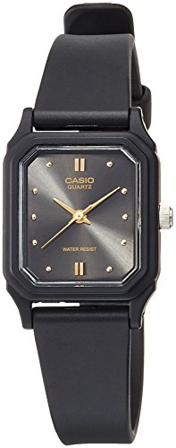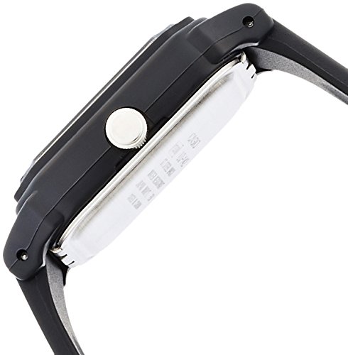 Brand, Seller, or Collection Name:Casio Model number:EAW-LQ-142E-1A Part Number:LQ-142E-1A Model Year:2013 Item Shape:rectangle Dial window material type:Glass Display Type:Analog Clasp:Buckle Case material:Resin Case diameter:22.5 millimeters Case Thickness:8 millimeters Band Material:Resin Band length:Women's Standard Band width:14 millimeters Band Color:Black Dial color:Black Special features:measures-seconds Movement:Analog quartz Water resistant depth:50 Meters