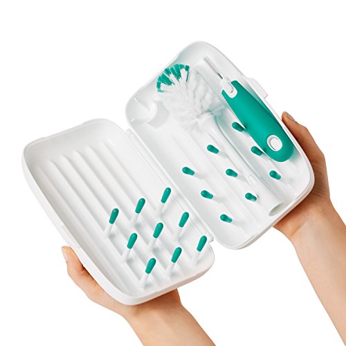 -. Binding : Baby Product -. Brand : OXO -. Feature : Compact, all-in-one cleaning solution perfect when away from home / Bottle brush with silicone detail cleaner and bottle brush stand fit securely inside drying rack / Flexible tines elevate bottles, nipples and breast pump parts to allow for ventilation / Rib pattern wicks away water and provides ample space for drying. Dishwasher-safe top rack only / Ideal for sanitary drying of bottles and sippy cups on the go, or breast pump parts at work or while traveling -. Label : OXO Tot -. Manufacturer : OXO Tot -. ProductGroup : Baby Product -. ProductTypeName : BABY_PRODUCT -. Publisher : OXO Tot -. Studio : OXO Tot -. Title : OXO Tot On-the-Go Drying Rack with Bottle Brush