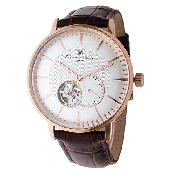 サルバトーレ マーラ SALVATORE MARRA 自動巻き メンズ ウォッチ 時計 ホワイト/ピンクゴールド Salvatore Marraは1967年5月、イタリアのSan Giovanni In Foire生まれ。現在はルネサンス文化の中心地であった国際都市フィレンツェに住まいとアトリエを持ち、クリエイティブな仕事に専念している。イタリアの文化、デザインと、インターナショナルなセンスとの融合が生んだ「挑発とエレガンス」 どんな場所、どんな時間にもふさわしいコレクションとなるよう優れたクオリティ、適切なプライス、調和のとれたカラーとイタリアン・テイストを探求し続ける。プレゼントやギフトにもおすすめ。